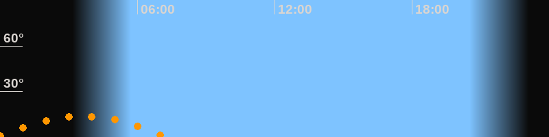 | Untergang | 07:16 Uhr im Südwesten (αAz = 228,2°) |