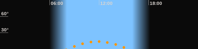 | Untergang | 15:31 Uhr im Südwesten (αAz = 228,2°) |