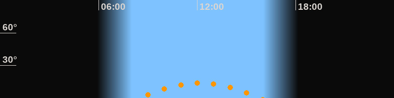 | Höchster Stand (Kulmination) | 12:09 Uhr (h = 13,9°) |