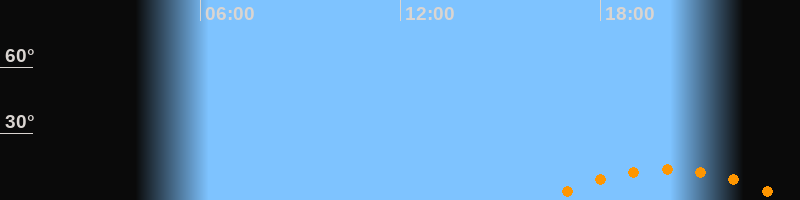 | Aufgang | 16:19 Uhr im Südosten (αAz = 131,8°) |
