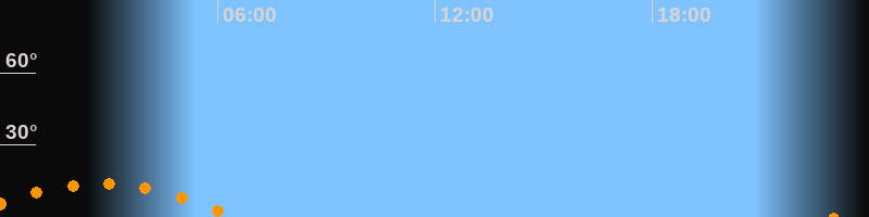 | Untergang | 06:27 Uhr im Südwesten (αAz = 228,2°) |