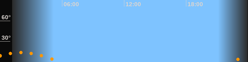 | Untergang | 05:44 Uhr im Südwesten (αAz = 228,2°) |