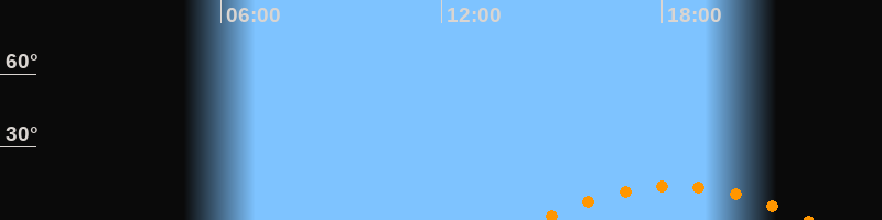 | Untergang | 22:01 Uhr im Südwesten (αAz = 228,2°) |