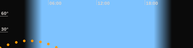| Untergang | 07:17 Uhr im Südwesten (αAz = 228,2°) |