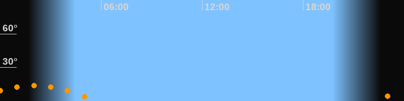 | Untergang | 05:43 Uhr im Südwesten (αAz = 228,2°) |