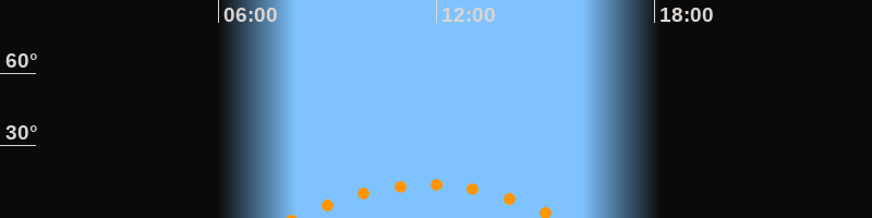 | Untergang | 15:26 Uhr im Südwesten (αAz = 228,2°) |