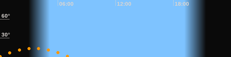 | Untergang | 07:14 Uhr im Südwesten (αAz = 228,2°) |