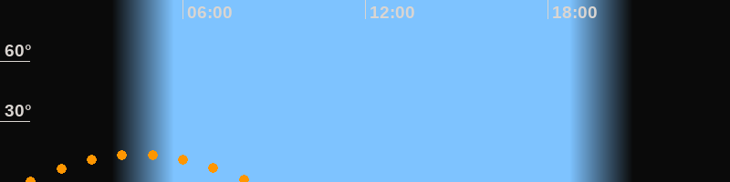 | Untergang | 08:14 Uhr im Südwesten (αAz = 228,2°) |