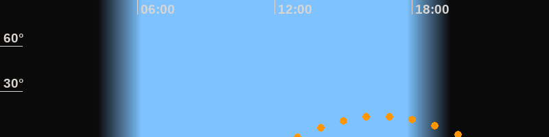 | Aufgang | 12:57 Uhr im Südosten (αAz = 131,8°) |