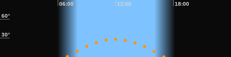 | Höchster Stand (Kulmination) | 11:57 Uhr (h = 28,2°) |