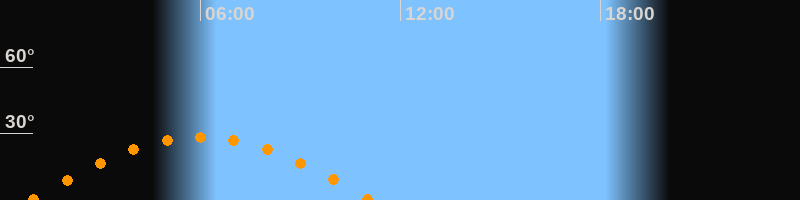 | Höchster Stand (Kulmination) | 06:00 Uhr (h = 28,2°) |