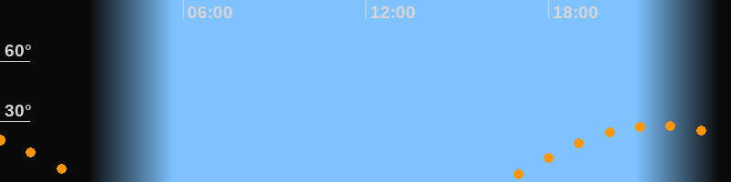 | Aufgang | 16:30 Uhr im Osten (αAz = 107°) |