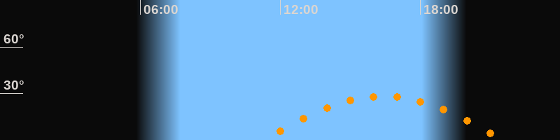 | Höchster Stand (Kulmination) | 16:25 Uhr (h = 28,2°) |