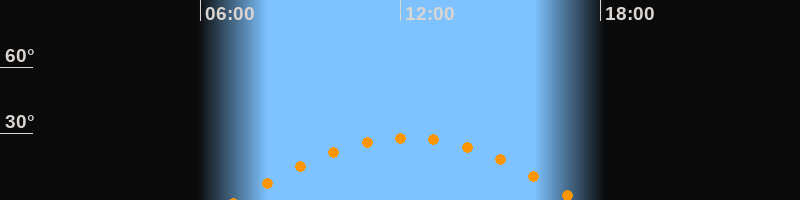 | Höchster Stand (Kulmination) | 12:12 Uhr (h = 28,2°) |