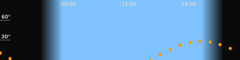 | Untergang | 01:14 Uhr im Westen (αAz = 253°) |