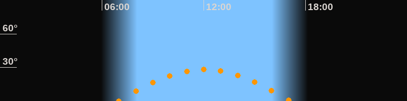 | Höchster Stand (Kulmination) | 12:02 Uhr (h = 28,2°) |