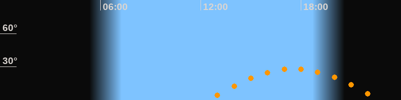 | Höchster Stand (Kulmination) | 17:34 Uhr (h = 28,2°) |
