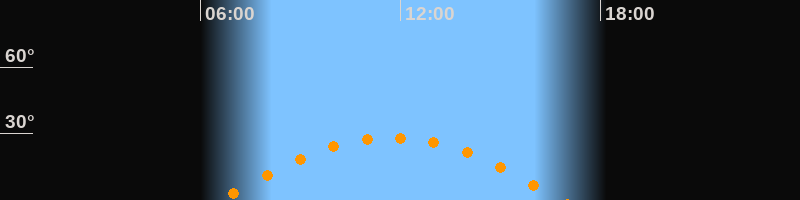 | Höchster Stand (Kulmination) | 11:43 Uhr (h = 28,2°) |