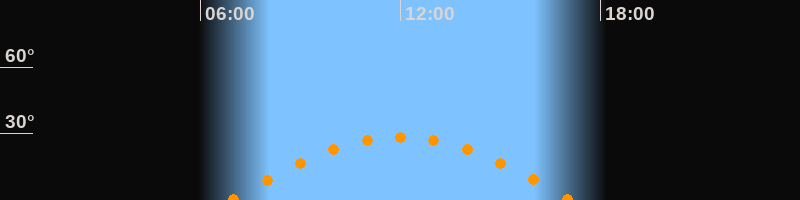 | Höchster Stand (Kulmination) | 12:00 Uhr (h = 28,2°) |