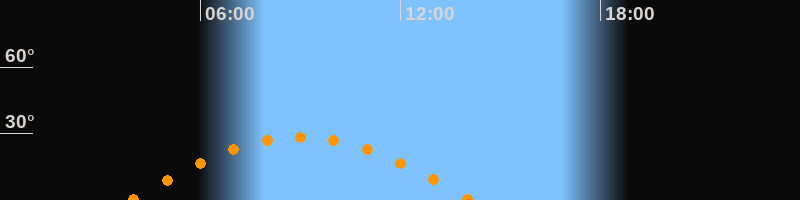 | Höchster Stand (Kulmination) | 09:00 Uhr (h = 28,2°) |