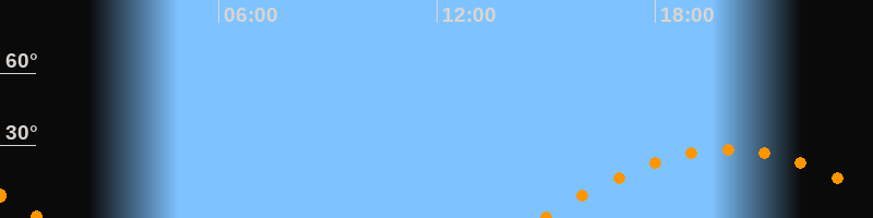| Untergang | 01:11 Uhr im Westen (αAz = 253°) |