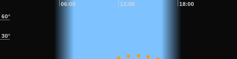 | Aufgang | 11:22 Uhr im Südosten (αAz = 150,7°) |