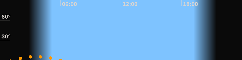 | Untergang | 06:01 Uhr im Südwesten (αAz = 209,3°) |
