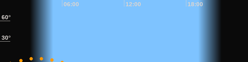 | Untergang | 06:03 Uhr im Südwesten (αAz = 209,3°) |