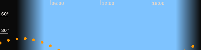 | Untergang | 07:03 Uhr im Südwesten (αAz = 240,9°) |