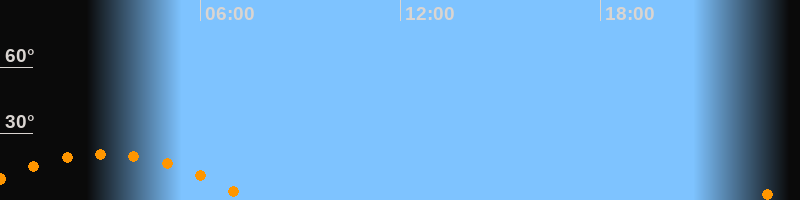 | Untergang | 07:35 Uhr im Südwesten (αAz = 240,9°) |