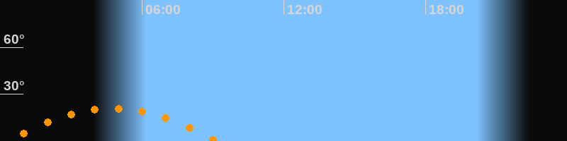 | Untergang | 09:11 Uhr im Südwesten (αAz = 240,9°) |