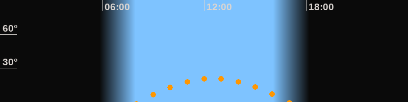 | Höchster Stand (Kulmination) | 12:32 Uhr (h = 20,9°) |