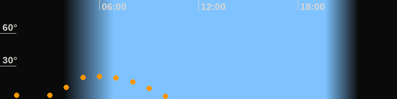 | Untergang | 10:24 Uhr im Südwesten (αAz = 240,9°) |