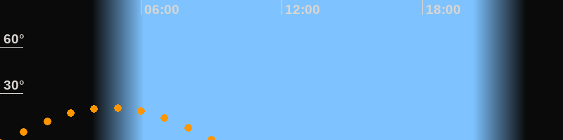 | Untergang | 09:08 Uhr im Südwesten (αAz = 240,9°) |