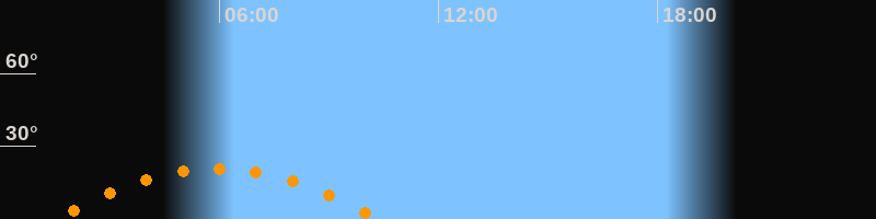 | Aufgang | 01:28 Uhr im Südosten (αAz = 119,1°) |