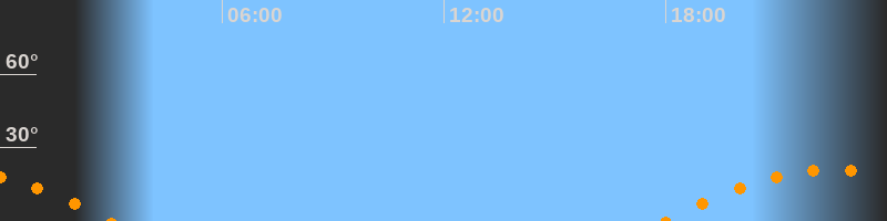 | Aufgang | 18:00 Uhr im Südosten (αAz = 119,1°) |