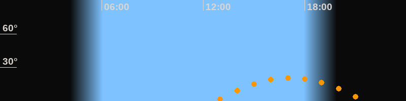 | Aufgang | 12:41 Uhr im Südosten (αAz = 119,1°) |