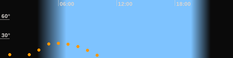 | Höchster Stand (Kulmination) | 05:57 Uhr (h = 23,1°) |