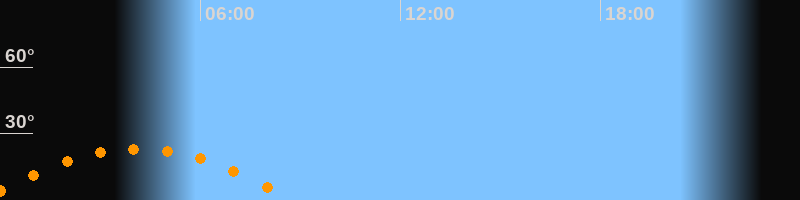 | Untergang | 08:48 Uhr im Südwesten (αAz = 244,6°) |