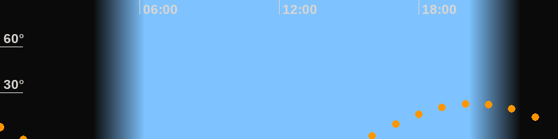 | Untergang | 01:00 Uhr im Südwesten (αAz = 244,6°) |