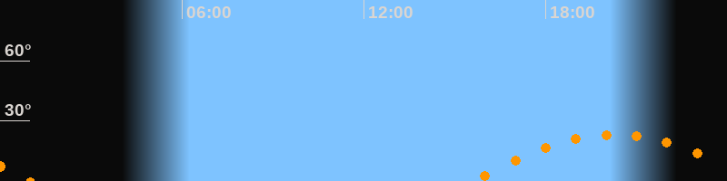 | Aufgang | 15:36 Uhr im Südosten (αAz = 115,4°) |