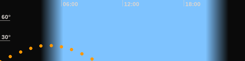 | Untergang | 09:27 Uhr im Südwesten (αAz = 244,6°) |