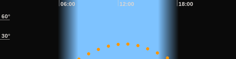 | Höchster Stand (Kulmination) | 12:35 Uhr (h = 23,1°) |