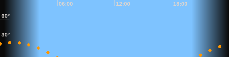 | Untergang | 05:58 Uhr im Südwesten (αAz = 244,6°) |