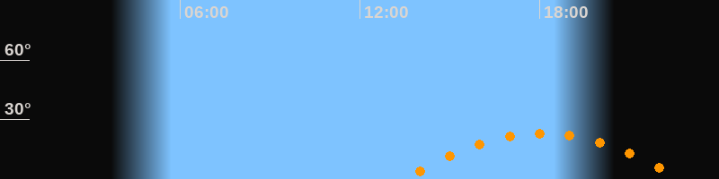 | Höchster Stand (Kulmination) | 18:06 Uhr (h = 23,1°) |