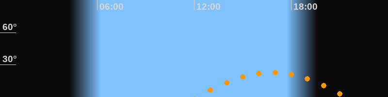 | Höchster Stand (Kulmination) | 16:47 Uhr (h = 23,1°) |