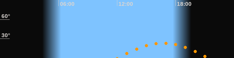 | Höchster Stand (Kulmination) | 16:43 Uhr (h = 23,1°) |