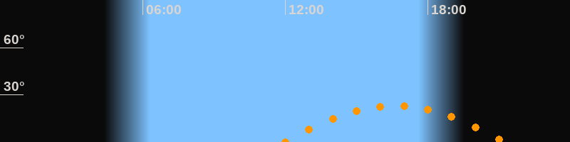 | Höchster Stand (Kulmination) | 16:35 Uhr (h = 23,1°) |