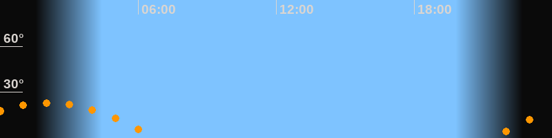 | Untergang | 06:47 Uhr im Südwesten (αAz = 244,6°) |