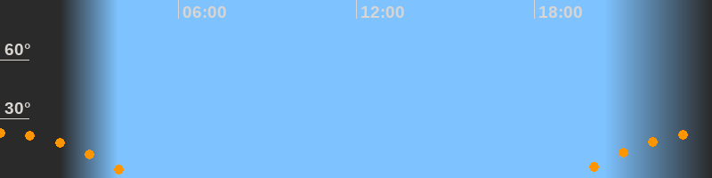 | Untergang | 04:37 Uhr im Südwesten (αAz = 244,6°) |